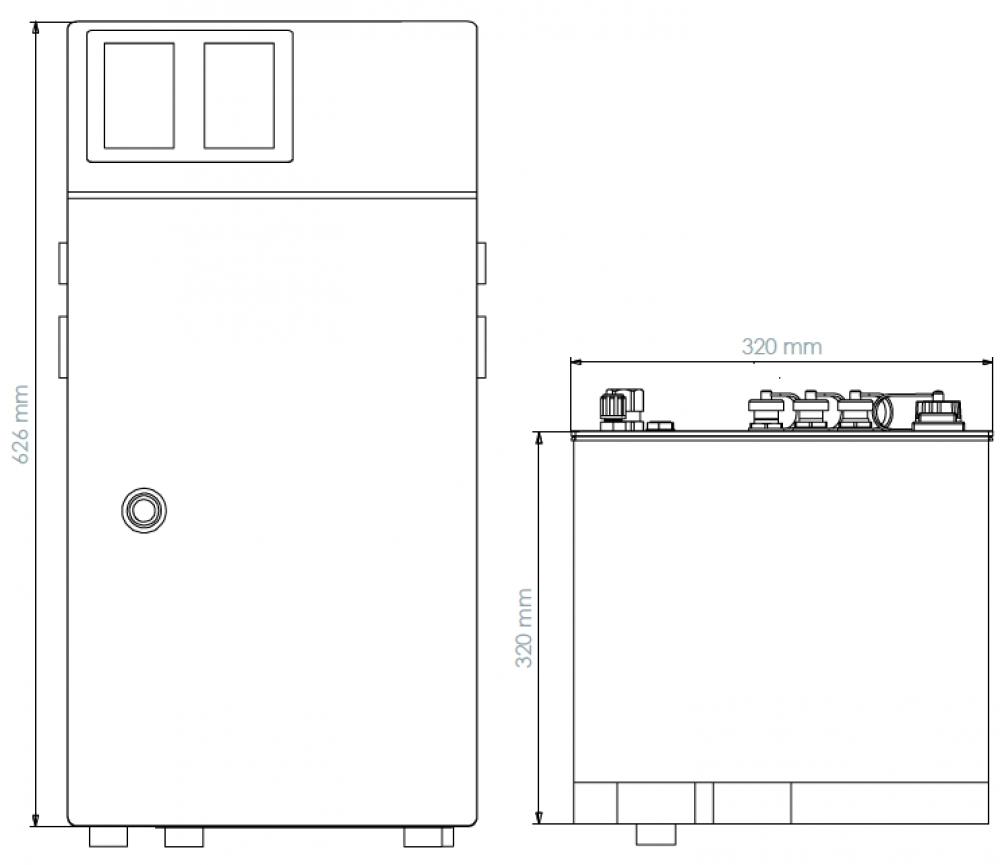 Alloggiamento: Acciaio inossidabile, IP54 - 320 x 320 x 626 mm (L x P x A)